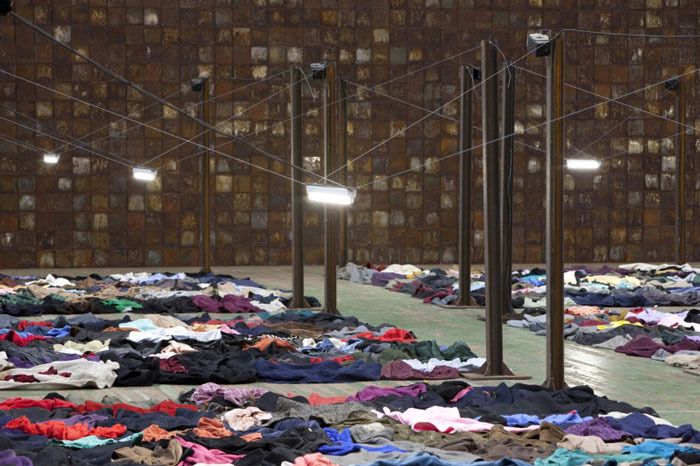 "It’s used clothing. I’ve always imagined that used clothing and a photo of somebody and a dead body are nearly the same. They’re all objects related to the missing person. On the floor there are mostly coats, which more clearly take the form of people. On the “mountain” are other types of clothing that are all mixed up. You can’t imagine these people. There is no more individuality."
